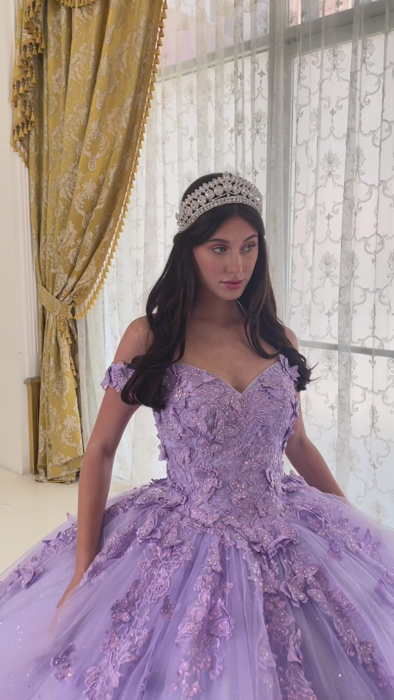 Cinderella Divine 15704 Ladivine Off Shoulder Floral Quince Ball Gown