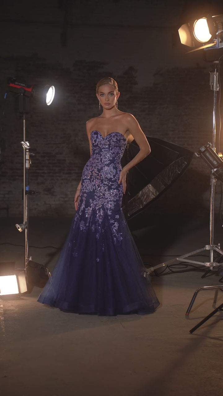 Cinderella Divine CM340 Ladivine Strapless Floral Navy Mermaid Dress