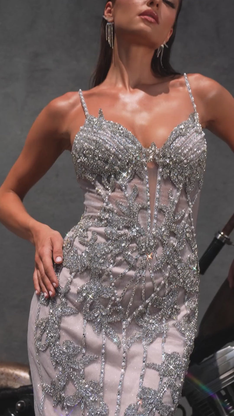 Ladivine CZ2407 Strapless Gold Sequin Corset Dress