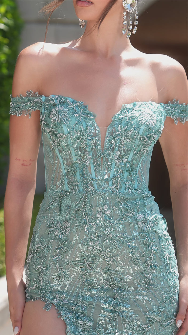 Andrea & Leo A1421 Lace Beaded Floral Mermaid Dress