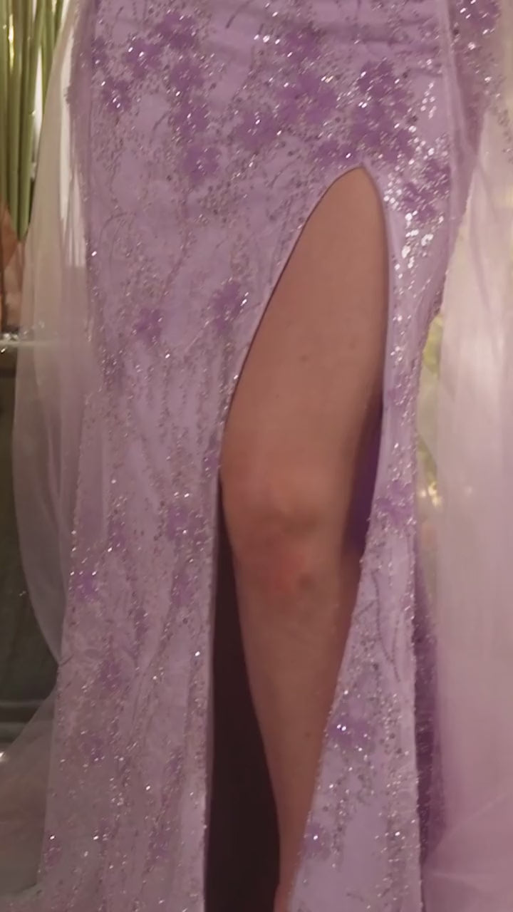 Andrea & Leo A1237 Off Shoulder Slit Leg Floral Tulle A Line Gown