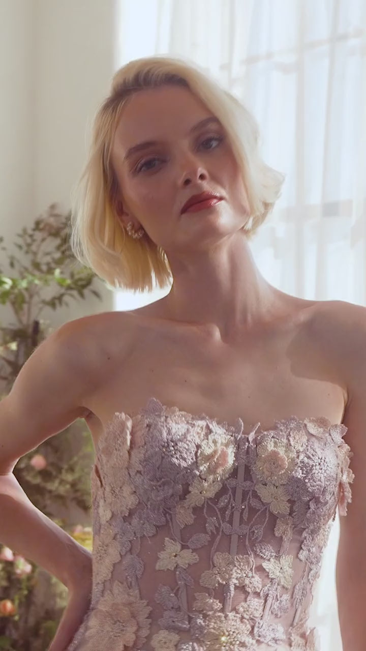 Andrea & Leo A1430 Strapless Floral Printed Ball Gown