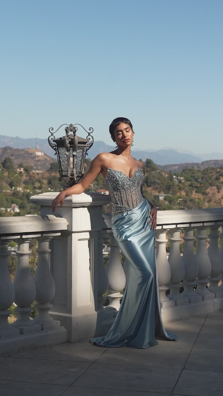 Ladivine CDS529 Fitted Satin Crystal Dress