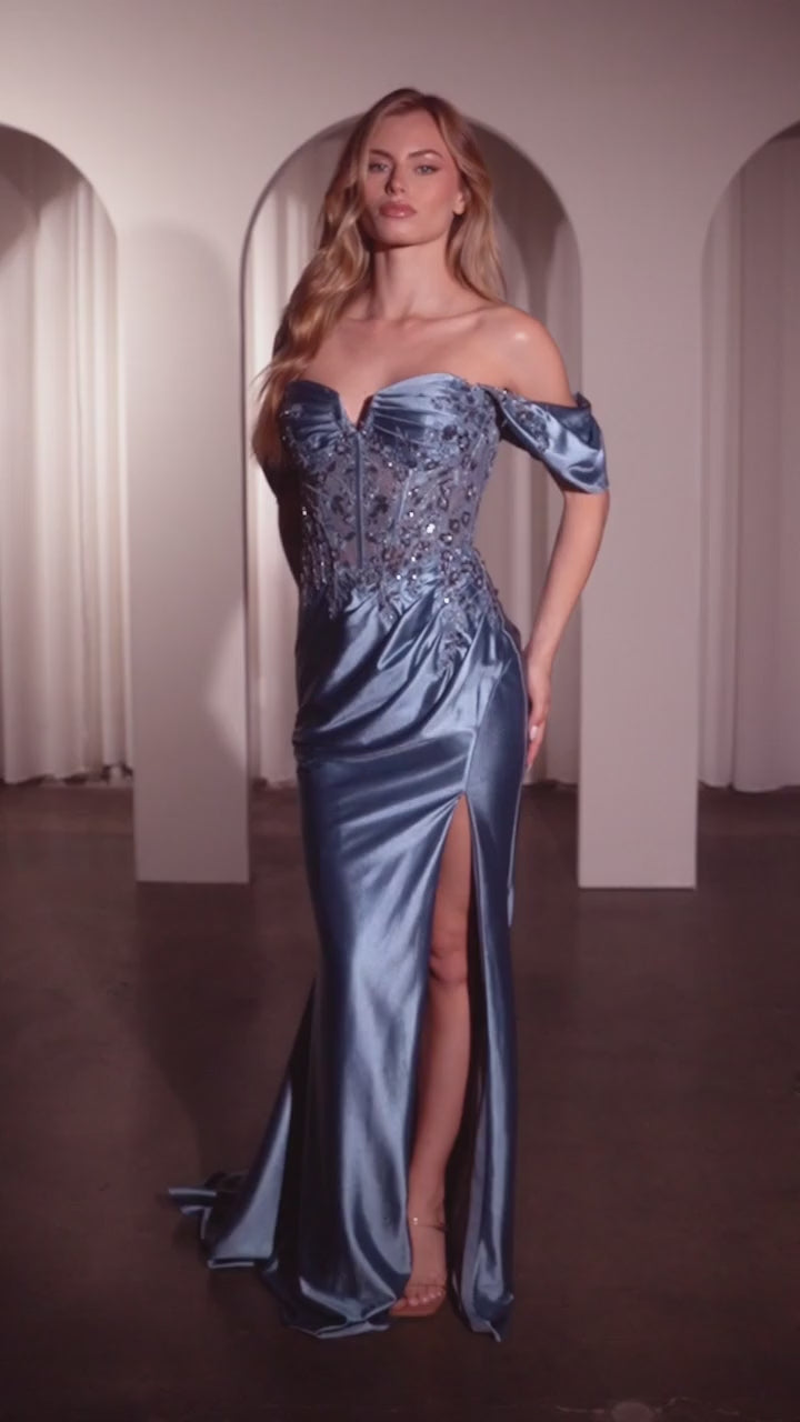 Ladivine KV1121 Off the Shoulder Satin Fitted Gown