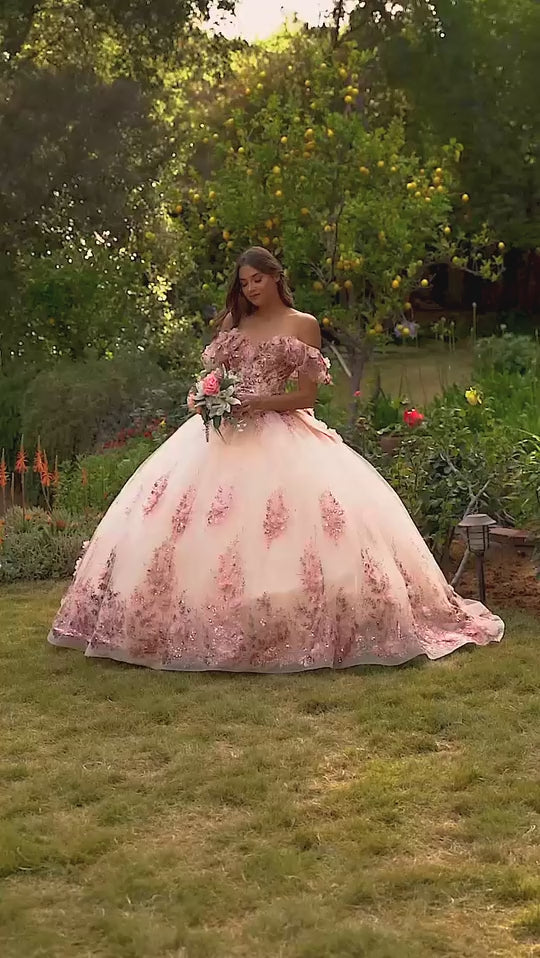 Cinderella Divine 15716 Ladivine Sage & Floral Blush Ball Gown Quinceanera Dress