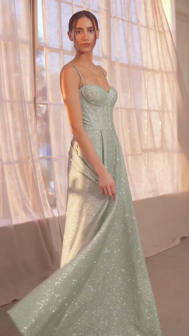 Ladivine CC2397 Glitter Dusted Fitted Stretch Satin Gown