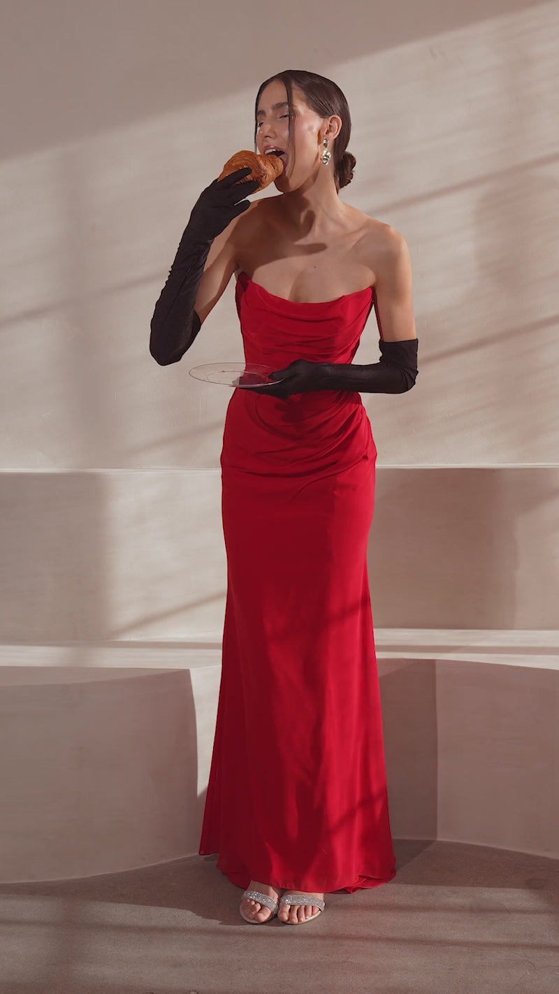 Amoris T701 Strapless Shimmering Slit Leg Dress