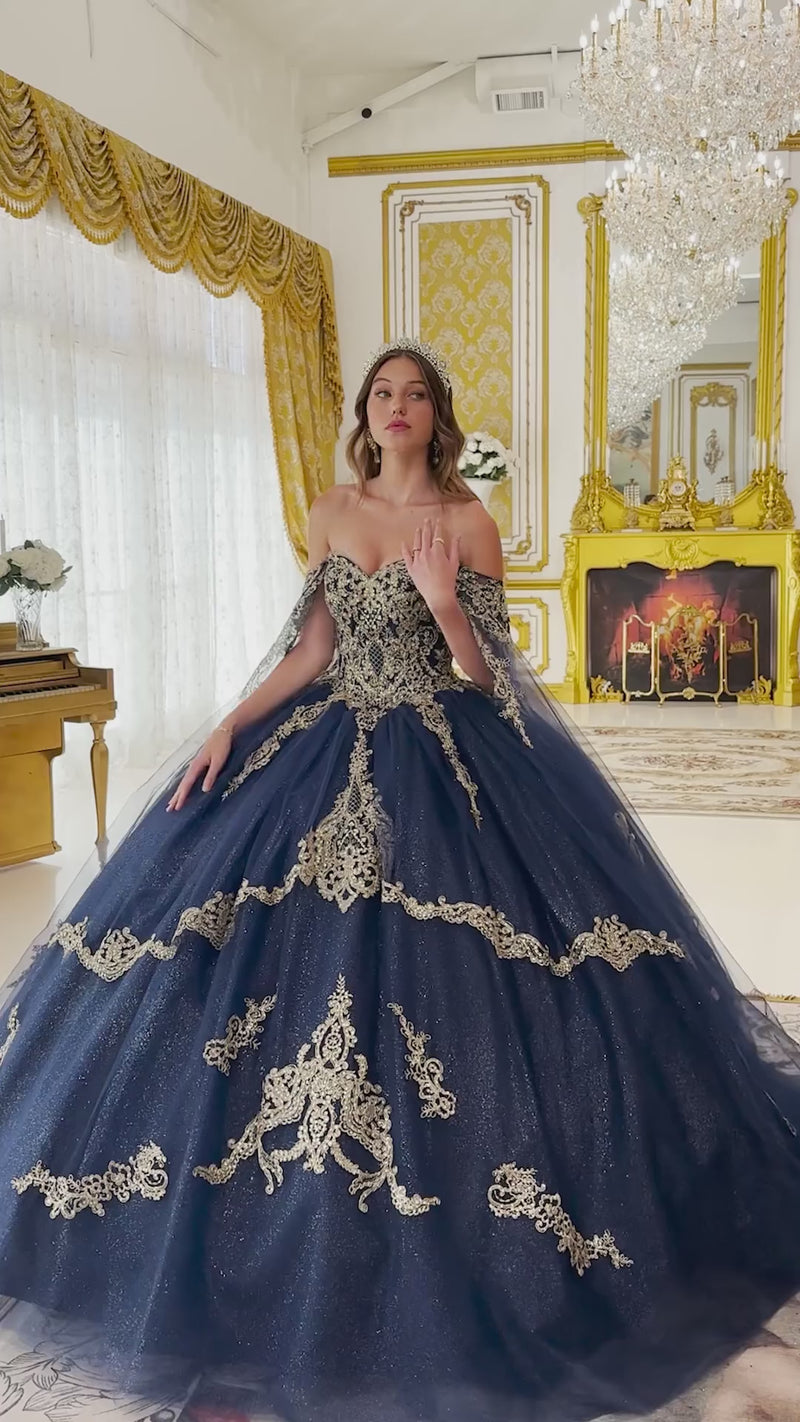 Cinderella Divine 15711 Ladivine Layered Gold Lace Ball Gown Quinceanera Dress